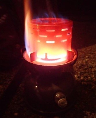 真っ赤になったヒーターアタッチメントと、隙間から漏れる炎を見てるだけでも心も体も暖かくしてくれる組み合わせのヒーター
