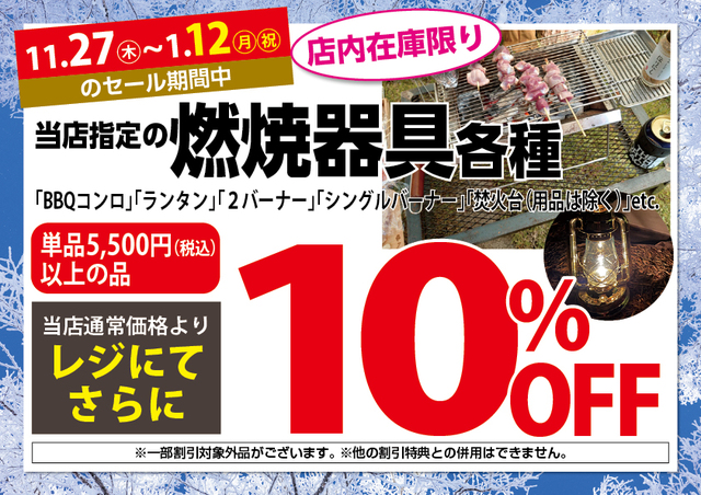 年末年始のBIGセール『アウトドア ウィンターSALE』を11月27日(木)~1月12日(月・祝)まで開催中です!