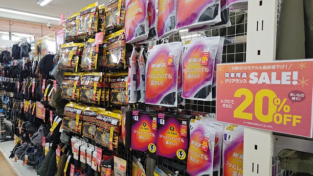 2026年2月18日その他・お知らせ 防寒用品クリアランスセール開催中! 現在、防寒用品クリアランスセール開催中! 対象商品は表示価格よりレジにて更に20%OFF!! まだまだ寒い日は続きますのでぜひご利用下さい。 皆様のご来店を心よりお待ちしております。 出典: 出典: 上州屋からのお知らせ ・会員証機能を搭載!お買い物や釣りの準備がもっと便利になる上州屋“公式”アプリ登場!・【上州屋メンバーズカード】毎月5の付く日と30日(5日、15日、25日、30日)はポイントアップデー!