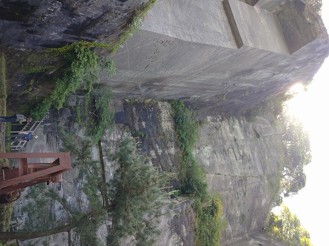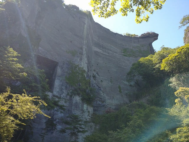 石切り場跡には絶壁の真下で休憩。