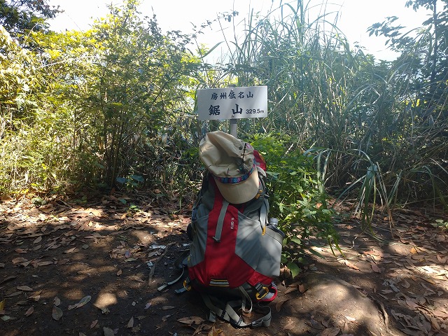 標高329m。三角点のある山頂は木々に囲まれています。