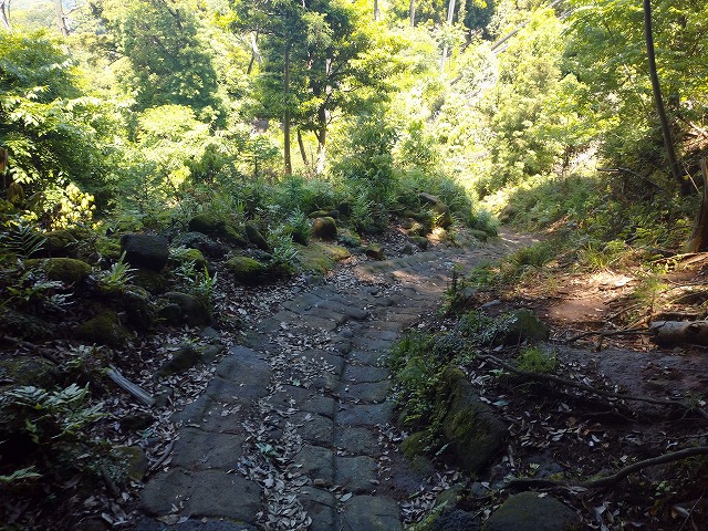 最初の分岐。真ん中の階段から登っていきます、いきなり約400段の階段。こちらは「関東ふれあいの道」のコースにもなっています。左は人気の「車力道コース」