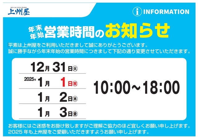 1月1日(元旦) 10:00~18:00