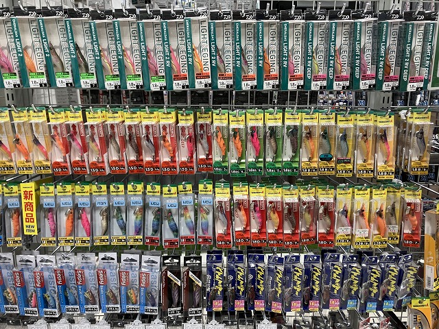 ただいま店内にテクビイカ用の小型エギや集魚ライト、ロッド・リール等もそろっています!