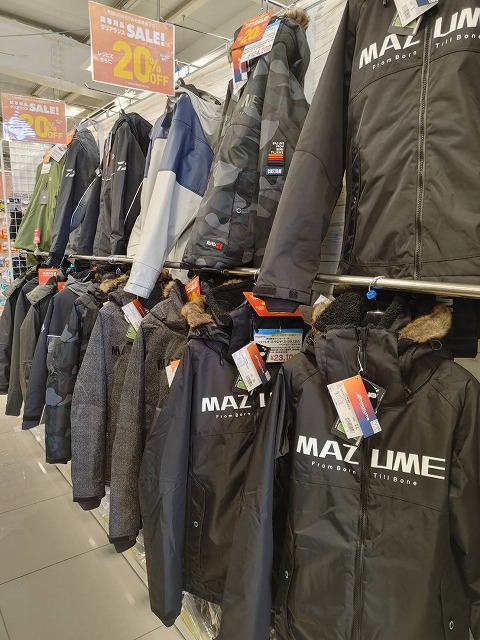 また、これから始まる氷上ワカサギ釣りや、厳寒期に必要な防寒スーツや防寒ジャケット、防寒ズボン、防寒グローブ、ニットキャップ等も合わせて「防寒用品最終売り尽くしセール」の対象品となりますので、この機会をどうぞお見逃しのないよう、宜しくお願い申し上げます。