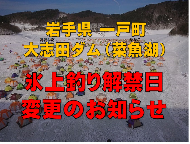 大志田ダム(菜魚湖) 2月9日(月)に解禁日変更となります!!