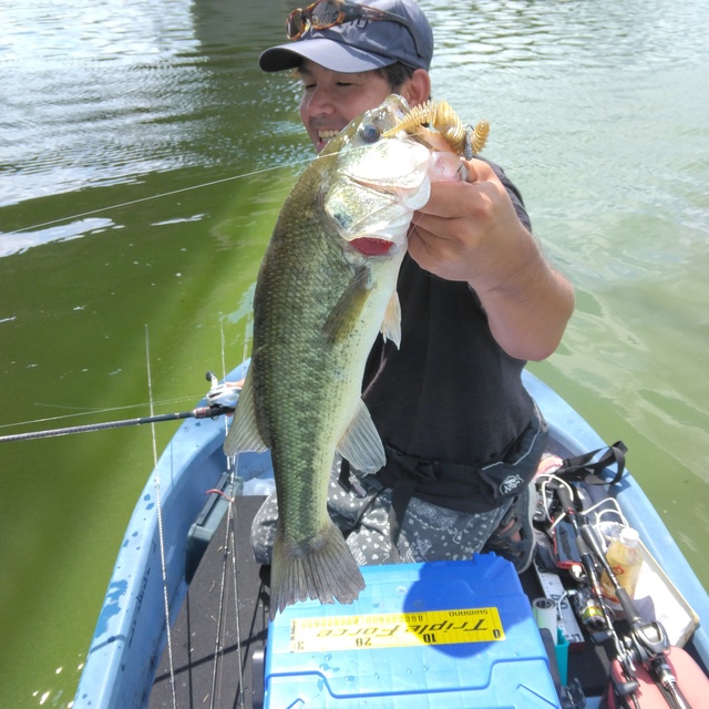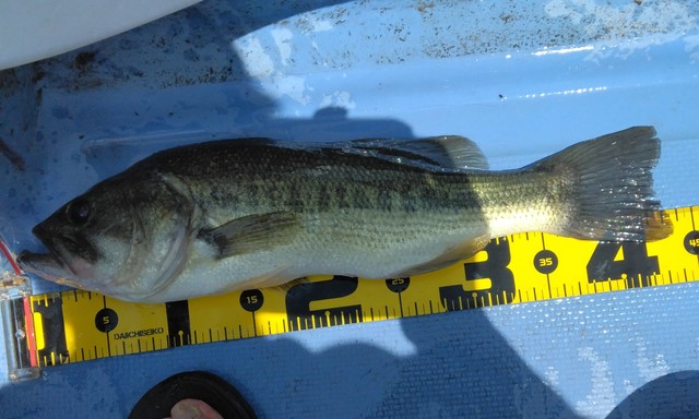 私が釣ったバスと同サイズでしたが、グッドコンディションでした(しかも本湖で)。