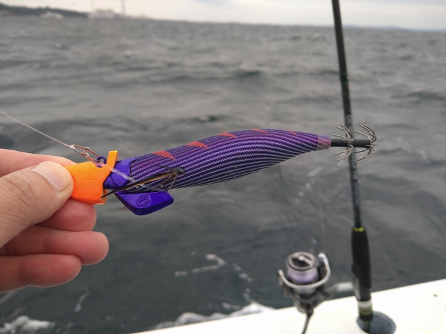 その後、船に乗り込みオーシャンシンカーVの装着の説明がありました。ヘッドの重さは10g~30g。水深やエギのフォール状態によって重さを変えていきます。