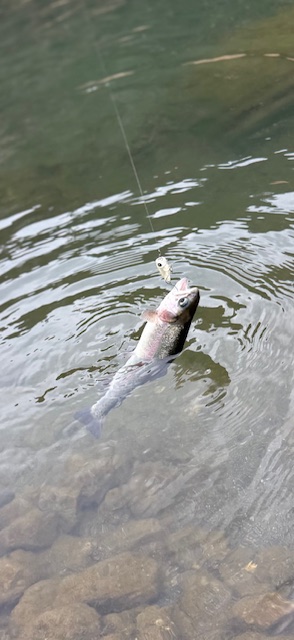 現在の釣り場は上流の小河内ダムの水位の関係で少々水が悪く放流魚も安定まで少し時間が掛かり正直、爆釣!とまではいかないもののトップからボトムまでレンジにはうるさくない感じで巻き下げで釣り込んでみると反応が良かったです。流れが効いている所ではトップでも反応良く出てくれます!ただ、スプーンは1ℊ位の小型の方が反応が良くしっかりかかってくれるのでバレも少なかったです