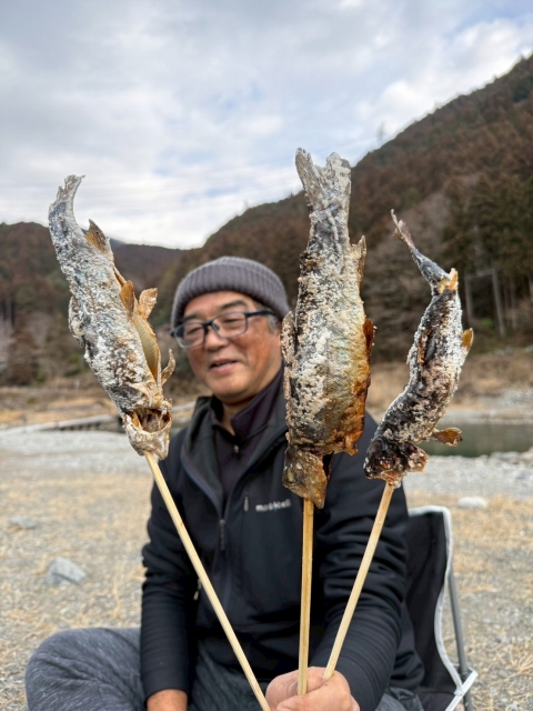 奥多摩フィッシングセンターさんはスタッフさんがニジマスを捌いてくれて串付け、塩まで付けてくれますのでとても楽ちん!(串代1本¥50-だけかかります。串付けをしない持ち帰り用なら無料!)