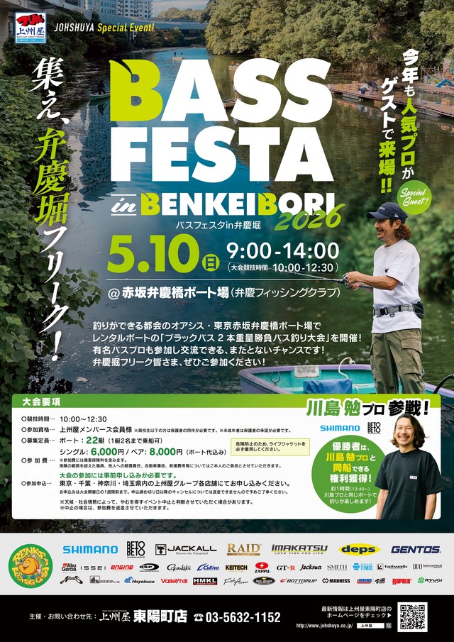 2026年5月10(日)東京都千代田区、赤坂弁慶ボート場にてBASS FESTA in BENKEIBORI 2026(弁慶ボート場バス釣り大会)を開催します!