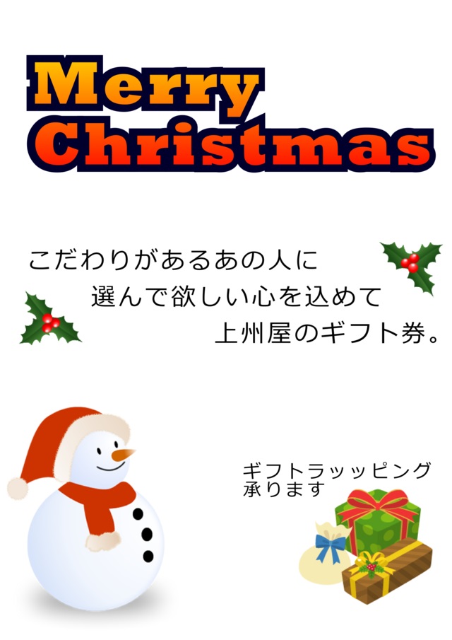 Xmasプレゼントに「上州屋ギフト券」は如何ですか(^^♪