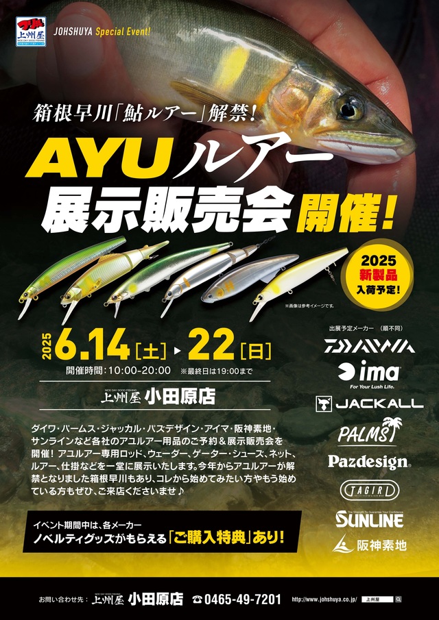 6月14日~22日に鮎ルアー展示即売会も開催中いたします(*'▽')