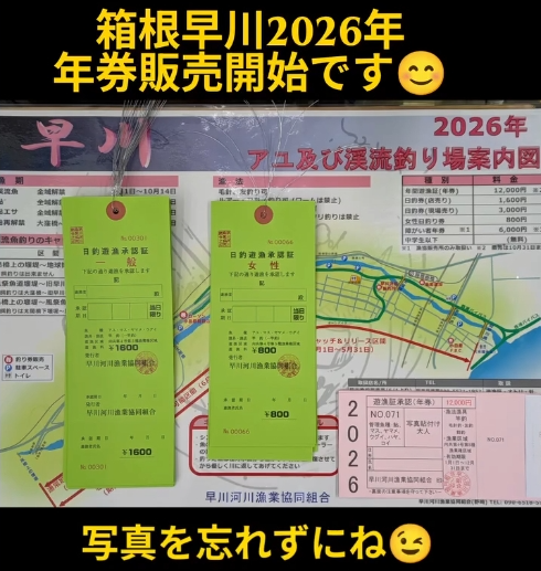 箱根早川2026年遊漁券販売開始です(*^^)v