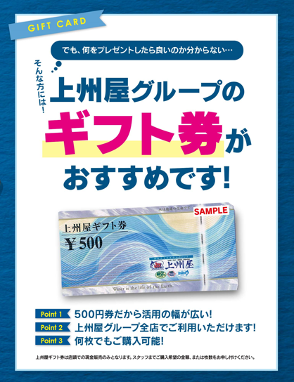 贈り物に上州屋ギフト券!