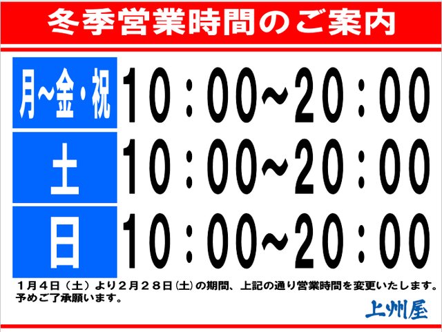 ☆冬季営業時間のご案内☆