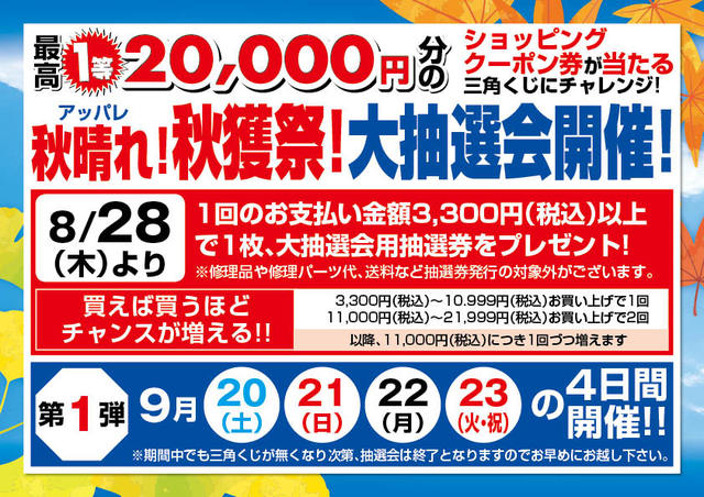 市原店 第二弾「秋晴!秋獲祭!大抽選会」 23日(…