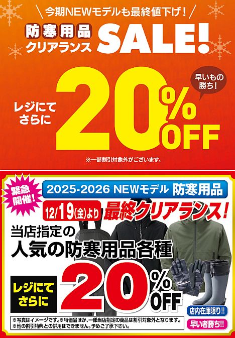 【市原店】本日より!防寒用品クリアランスセール…