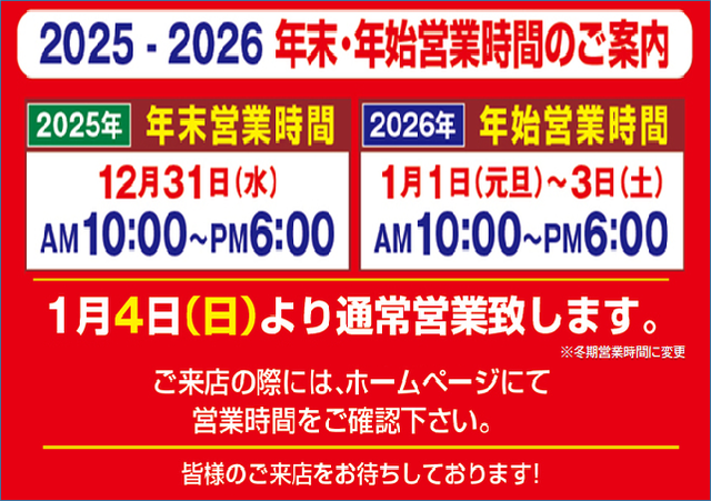 年末年始営業時間のお知らせ