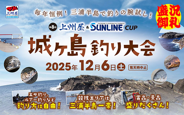 12/6(土)第8回城ヶ島釣り大会、上州屋&SUNLINE…