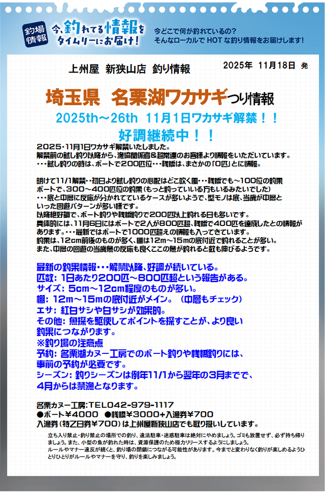 名栗湖ワカサギ好調っっ!!