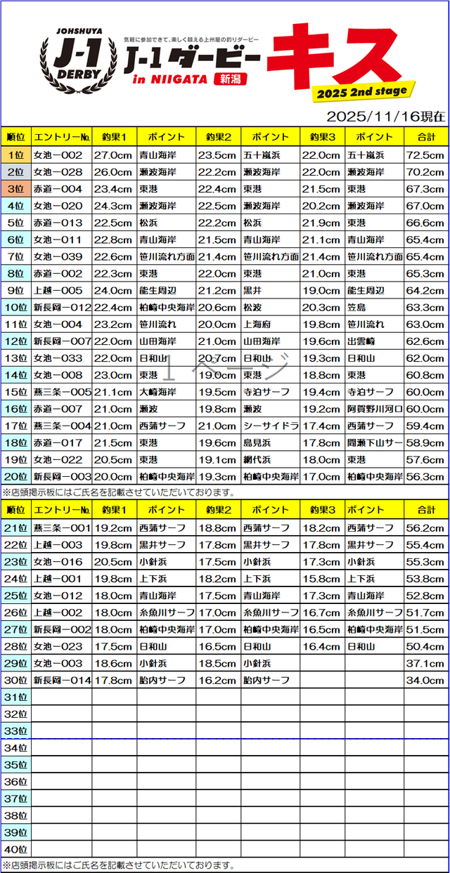 J1ダービーキス2025 セカンドステージ最終結果発表