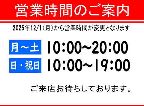 営業時間変更のお知らせです