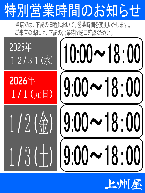 年末年始営業時間のお知らせです