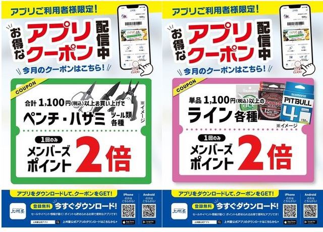 上州屋公式アプリでお得なアプリクーポン配信中!