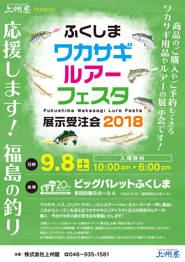 2018年9月8日(土)10:00~18:00(予定)、福島県郡山市“ビックパレットふくしま”多目的展示ホールAにて「ふくしまワカサギルアーフェスタ2018」を開催致します!