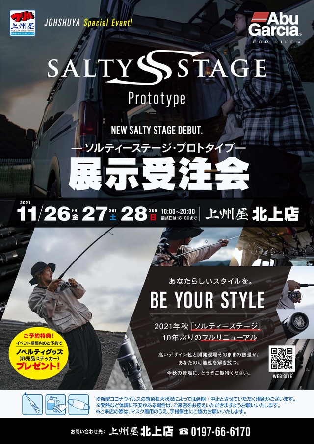 2021年11月26日(金)27日(土)28日(日)の3日間、上州屋北上店にてAbuGarcia|アブガルシアの新製品ロッド「ソルティーステージ プロトタイプ」の展示受注会を開催します!