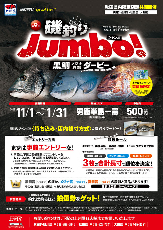 〔秋田エリア3店共同開催〕第9回「磯釣りジャンボ!」黒鯛・メジナ・真鯛ダービー!