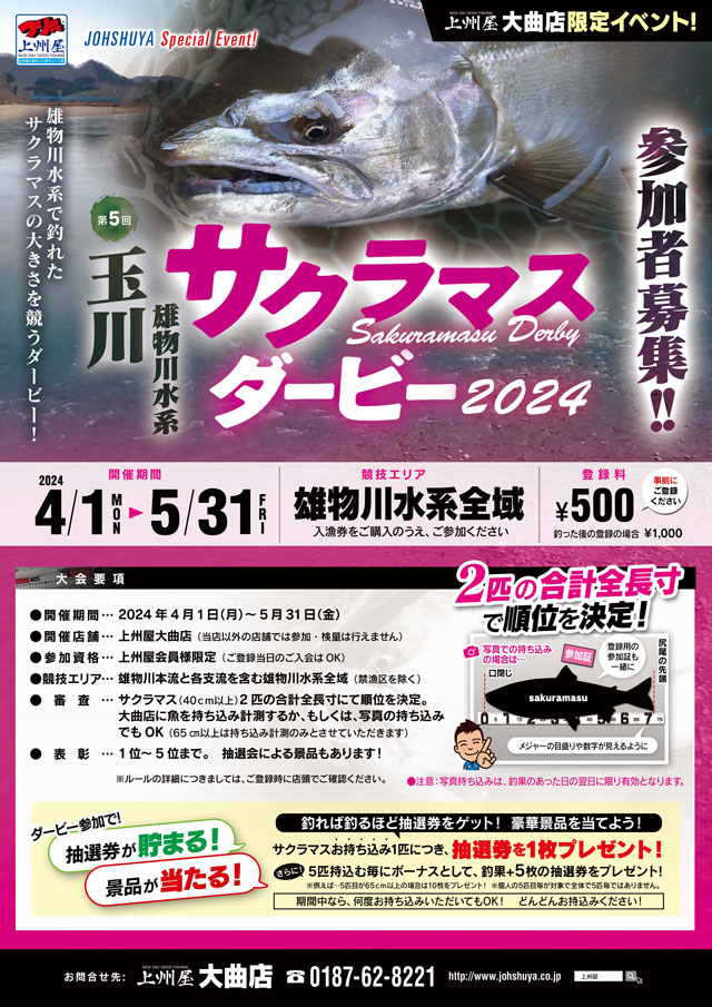 【大曲店】玉川・雄物川水系サクラマスダービー2024開催のご案内!