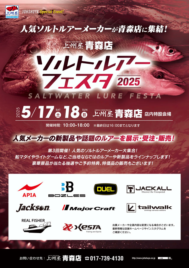 【青森店】人気ソルトルアーメーカーが大集結!ソルトルアーフェスタ2025in上州屋青森店!