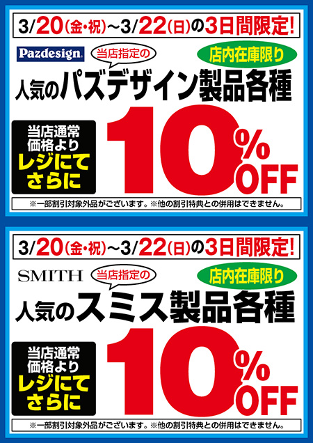 パズデザイン社は、特設販売コーナーとイベント限定アウトレット品の販売を予定!スミス社は猪苗代湖向けトラウトルアーの特設販売コーナー!