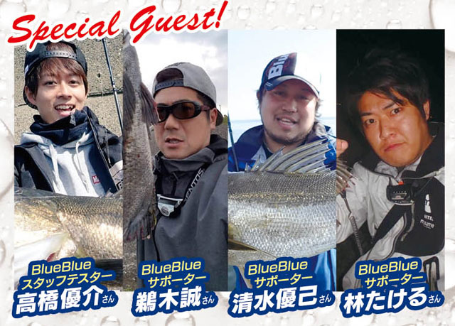当日はyouTubeなどでお馴染み!BlueBlueスタッフテスター高橋優介さん、クミホンの事ならこの方に!BlueBlueサポーター鵜木誠さん、湾奥シーバスはもちろんオフショアもこなすマルチアングラー!BlueBlueサポーター清水優己さん、浦安店初登場!ボラコンの事ならこの方に!BlueBlueサポーター林たけるさんが来店!