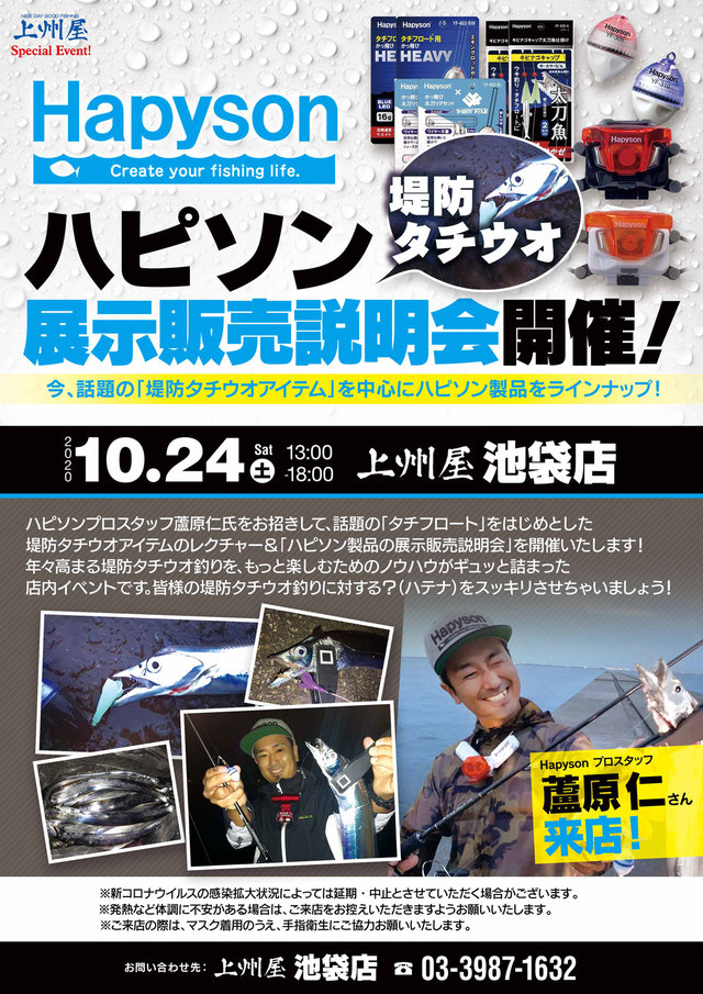 【池袋店】Hapysonハピソン〔堤防タチウオ〕展示販売説明会!プロスタッフ蘆原仁さん来店予定!