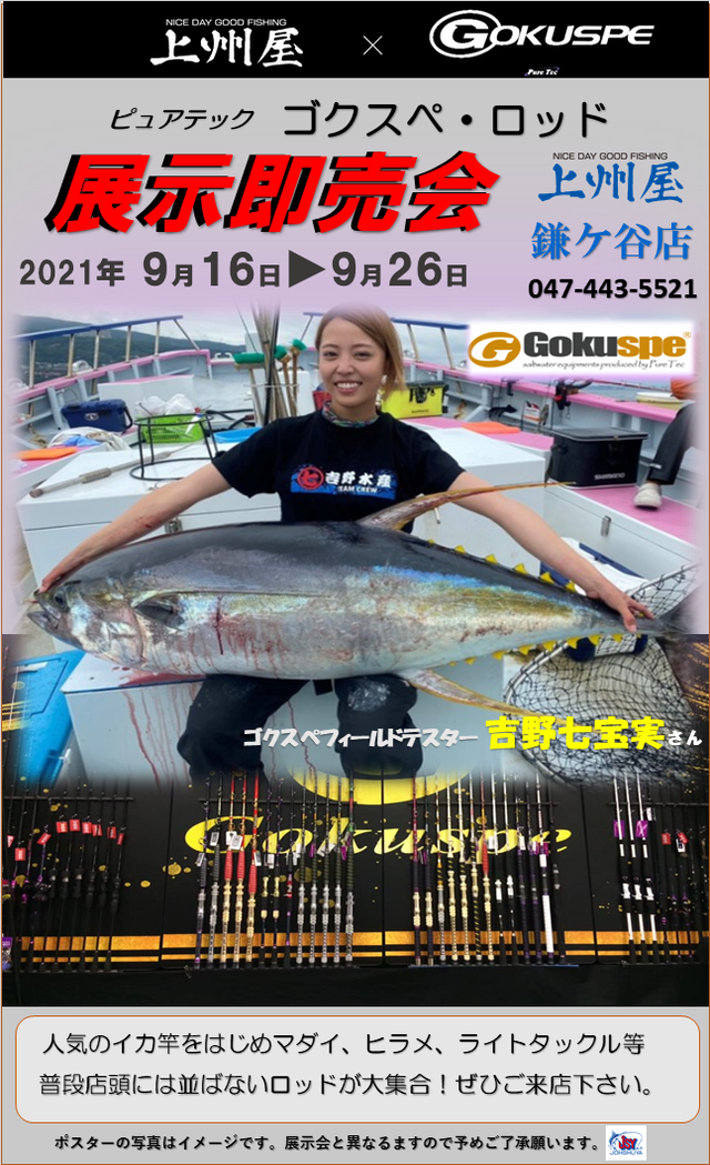 2021年9月16日(木)~9月26日(日)上州屋鎌ヶ谷店にてピュアテック「ゴクスペ」船釣りロッドの展示販売会を開催します。
