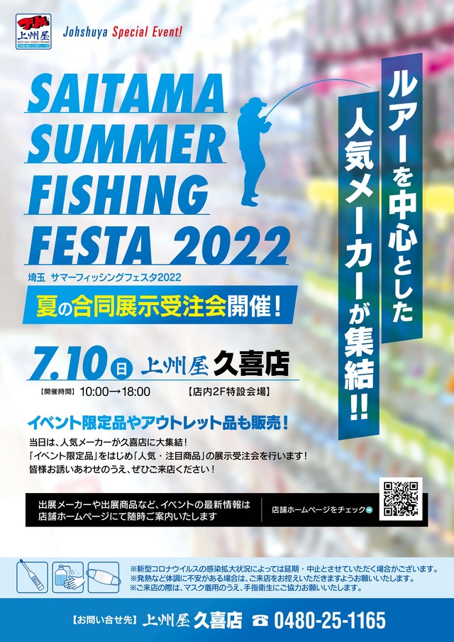 2022年7月10日(日)10:00~18:00(予定)上州屋久喜店にて埼玉サマーフィッシングフェスタ2022、夏の合同展示受注会を開催します!