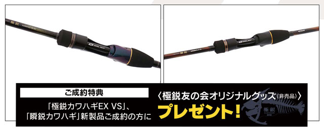 今回イベントにて「極鋭カワハギEX VS」「瞬鋭カワハギ」新製品をご成約のお客様に極鋭友の会オリジナルグッズ(非売品)をプレゼント!