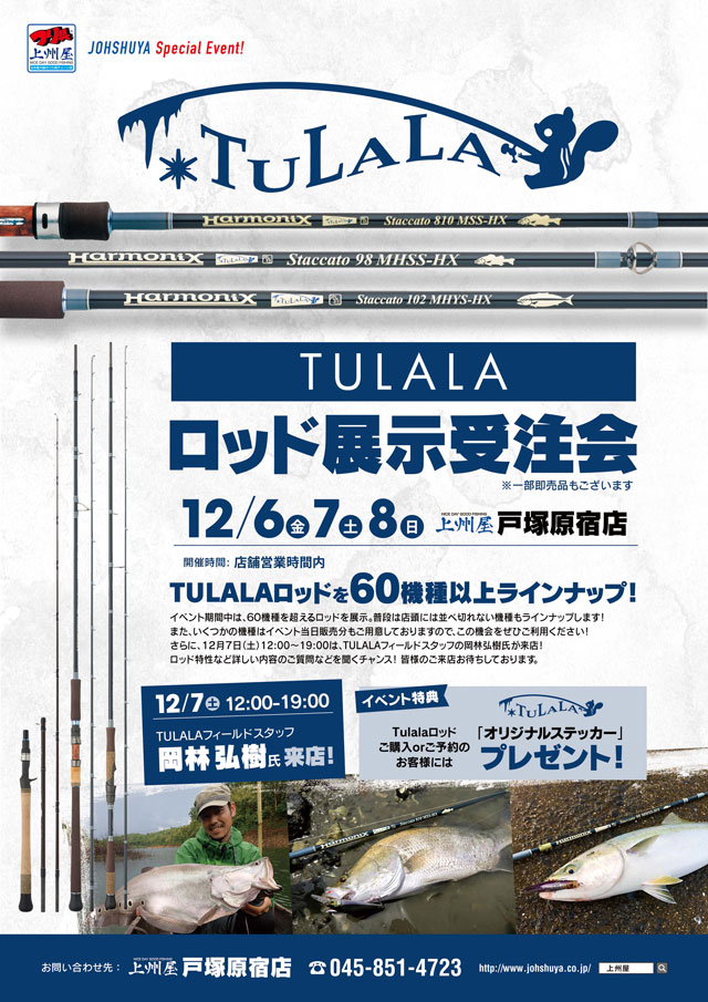 【戸塚原宿店】TULALA(ツララ)ロッド展示受注会!スタッフ来店日も!