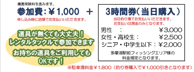 ※駐車料金1,800円(釣り券購入の場合1,000円引き)