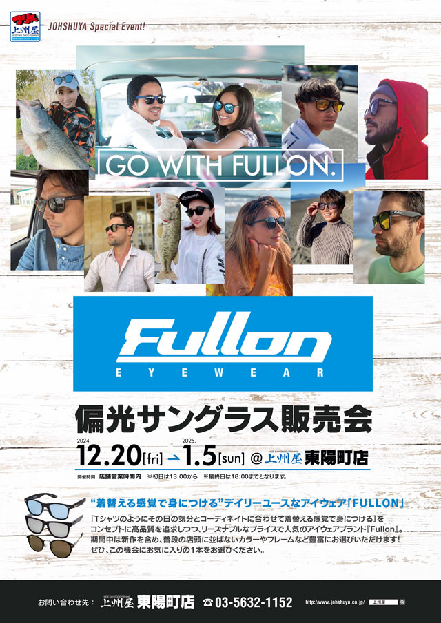 2024年12月20日(土)~2025年1月5日(日)の期間中、上州屋東陽町店にてFullon(フローン)偏光グラスの展示販売会を開催します!