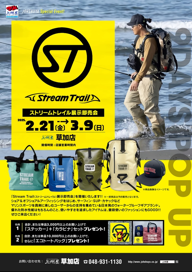 2025年2月21日(金)~3月9日(日)の期間中、上州屋草加店にてストリームトレイル展示即売会を開催します!
