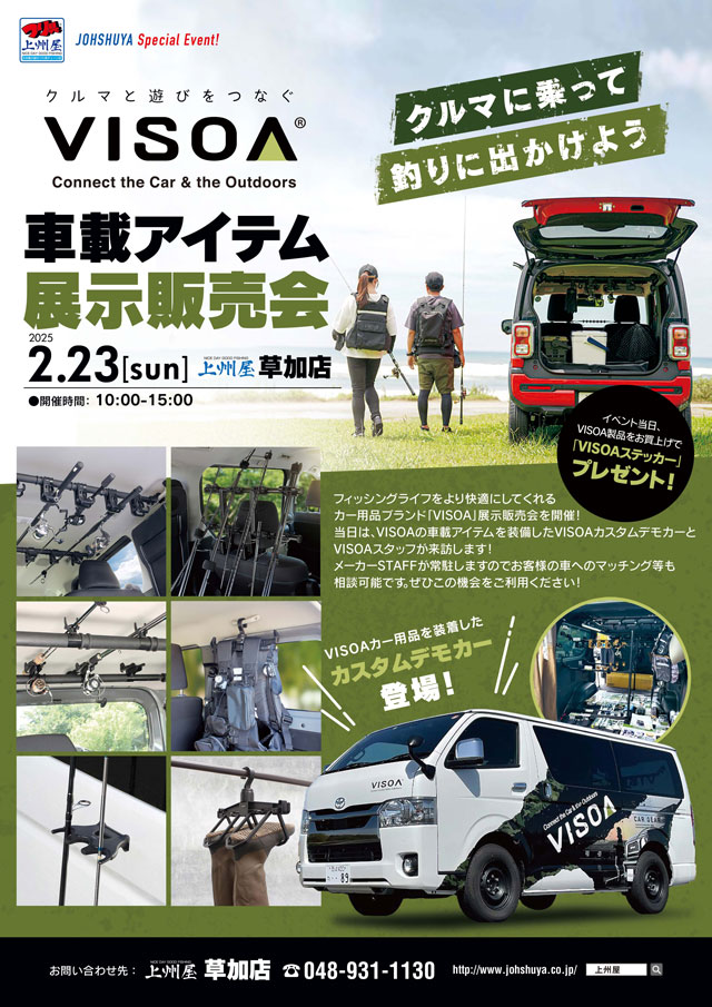 2025年2月23日(10:00~15:00、上州屋草加店にてクルマと遊びをつなぐ車載ギア「VISOAシリーズの展示販売を開催します!