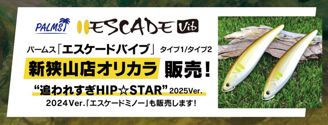 今年も上州屋新狭山店オリカラ「追われすぎHIP★STAR」販売いたします!2025verはパームス“エスケードVIB”(タイプ1/タイプ2)、併せて昨年好評頂いた2024ver“エスケードミノー”も販売!