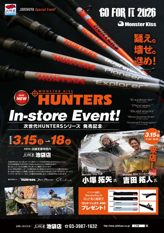 今年のモンスターキスは『Go for It!』 でアングラーをサポート!是非この機会をお見逃しなく!ご来店お待ちしております!