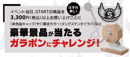 今回イベントにてSTART(スタート)商品を3,300円(税込)以上、お買い上げごとに豪華景品が当たるガラポンにチャレンジ!