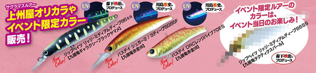 バスデイ・ルアーデザイナー川島雅史さん&ジップベイツ・フィールドテスター森下映治さんが監修プロデュースする限定カラーを販売します!イベント限定カラーの詳細は当日のお楽しみ!