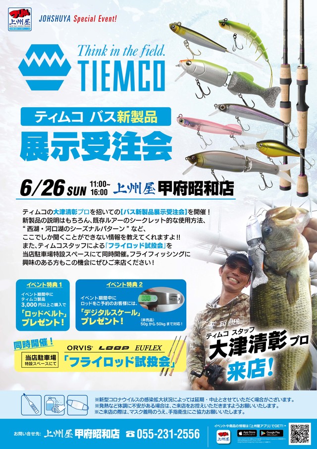 【甲府昭和店】TIEMCO(ティムコ)大津清彰プロ来店!バス新製品展示受注会&フライロッド試投会!